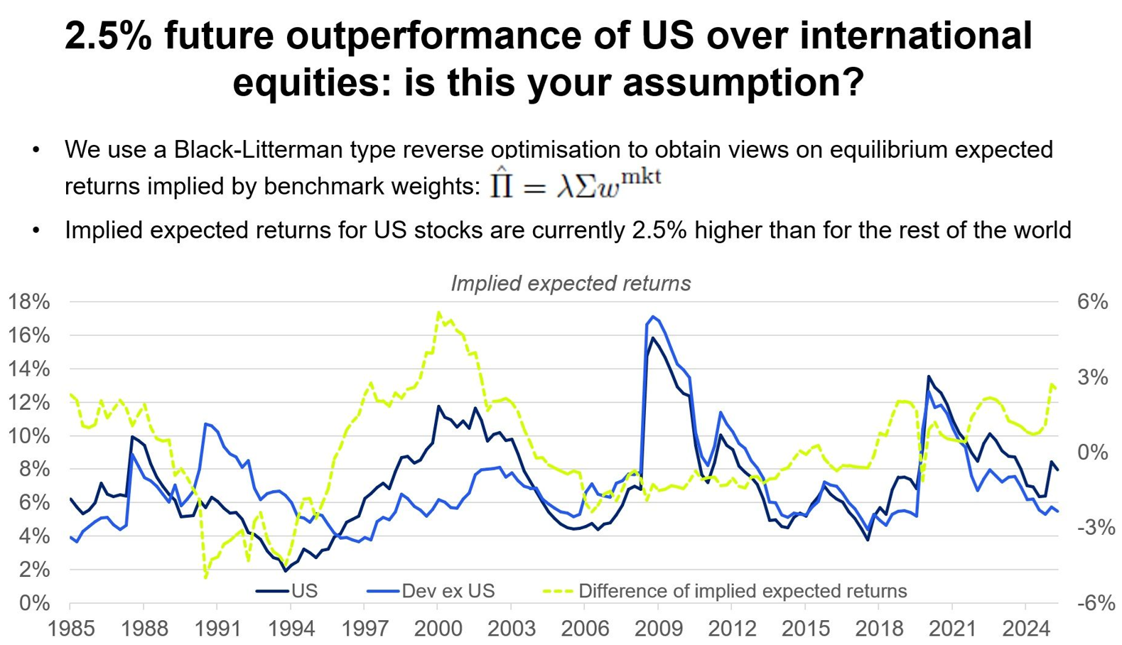In the context at hand, the aim is to analyze the difference of implied expected returns between U.S. equities and ex-U.S. equities.