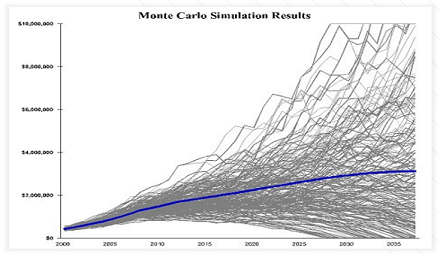 For the sake of comparison, the results of an arbitrary Monte Carlo simulation performed by the Moneytree financial planning solution, taken from a presentation of Moneytree, are illustrated in Figure 6.