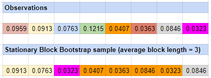 The problem is that the tendency for autocorrelation is severed [with the i.i.d. bootstrap]. In other words, the bootstrap sample is too random — the returns are independent from one another. In reality, that’s not an accurate description of market behavior.