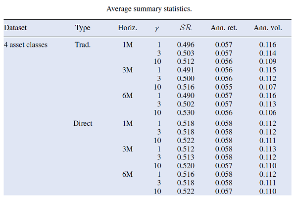 This is quite interesting to highlight since the objective of the direct approach is supposed to be the maximization of the portfolio Sharpe ratio!