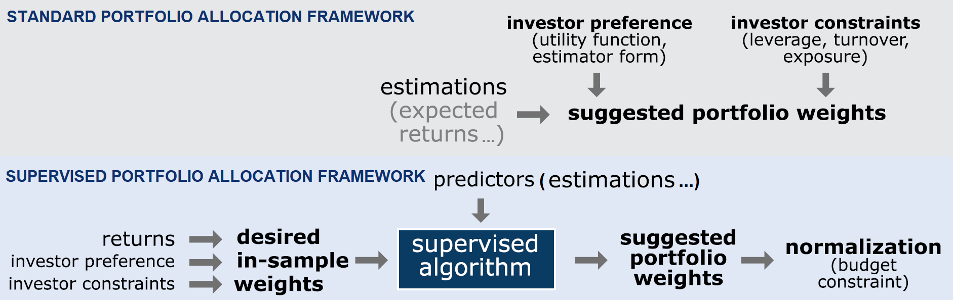 Chevalier et al.1 describes an asset allocation strategy that engineers optimal weights before feeding them to a supervised learning algorithm1, represented in the lower part of Figure 1.