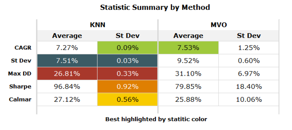 Consistent with Varadi and Teed2, the results demonstrate that the [$k$-NN-based supervised portfolio allocation] approach tends to outperform [the direct] MVO portfolio allocation [approach] on a risk-adjusted basis2, with a Sharpe ratio ~18%-38% higher.