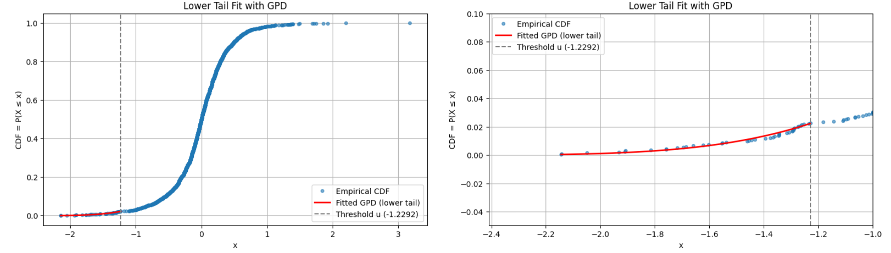 See Benito, S., Lopez-Martín, C. & Navarro, M.A. Assessing the importance of the choice threshold in quantifying market risk under the POT approach (EVT). Risk Manag 25, 6 (2023). ↩ ↩2 ↩3